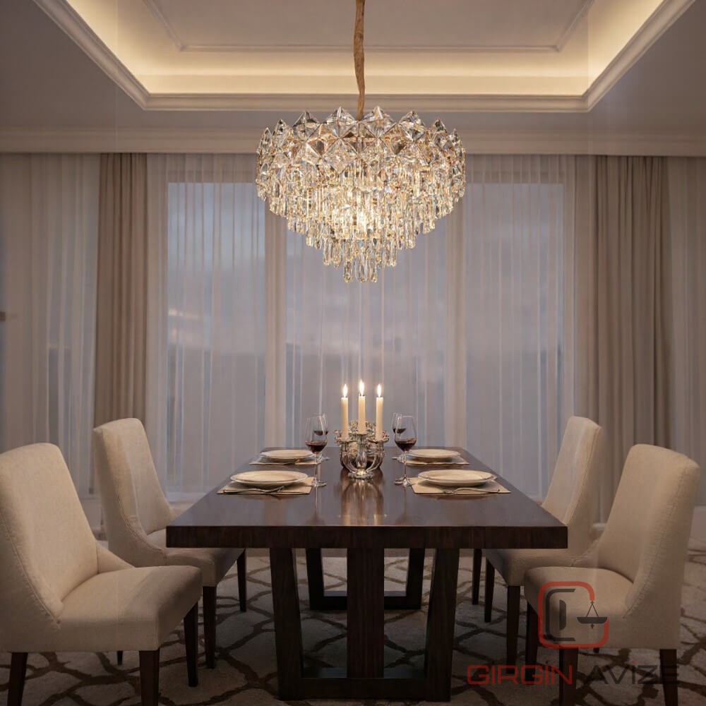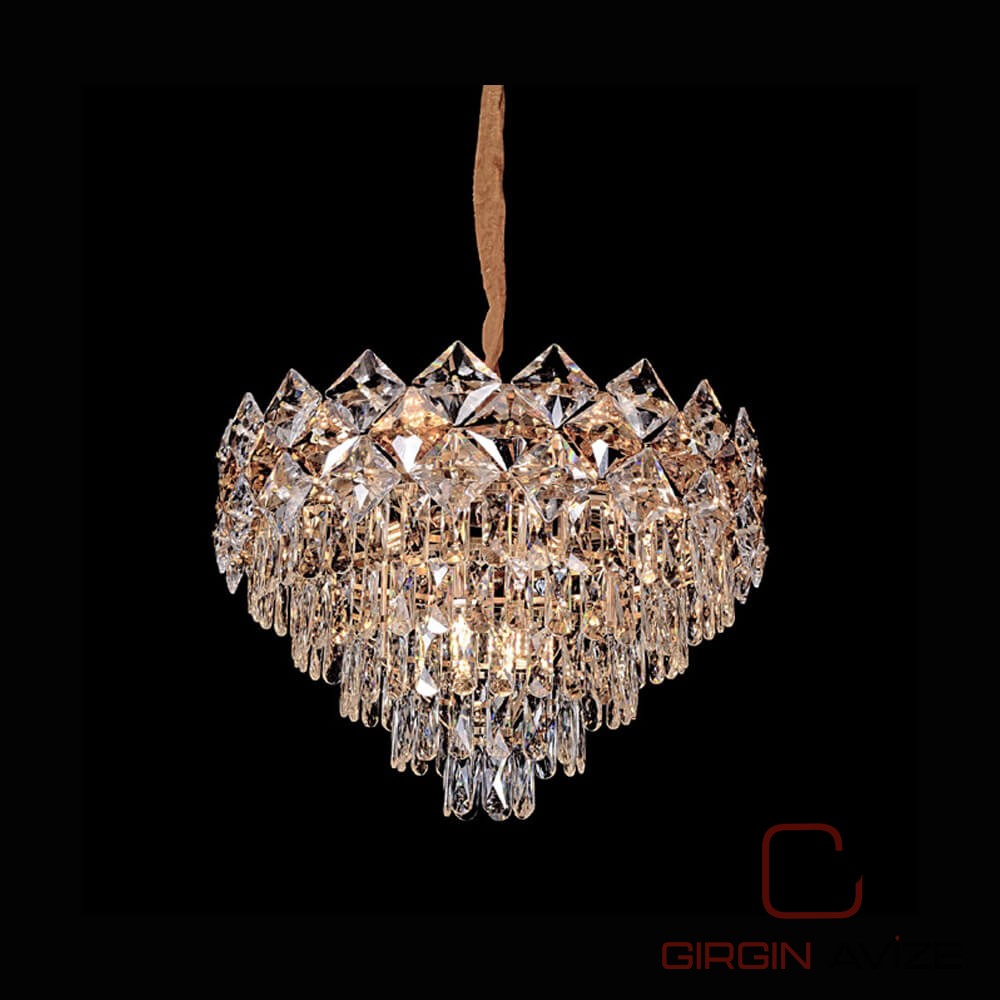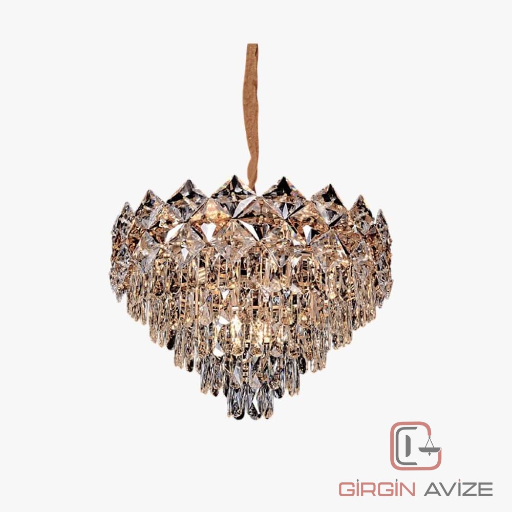 Lüks altın ve krom rengini kristallerle birleştiren, zarif ve sofistike bir atmosfer sunan bu sarkıt lamba ile mekanınıza değer katın. Cam malzemesi, kristallerin parlaklığını artırarak etkileyici ışık oyunları yaratır.