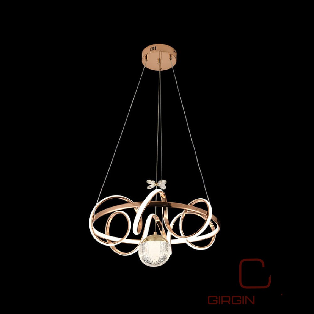 Elegance Spiral Led Avize, altın tonlarının ışıltısı ile zarif çiçek detaylarını bir araya getirerek her ortama büyüleyici bir atmosfer kazandırır.