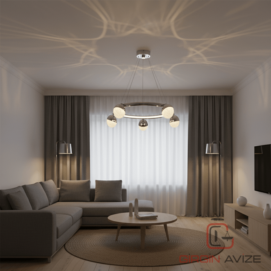 Estetik ve Işığın Buluşması Lüks Krom 5 li Yuvarlak LED Avize