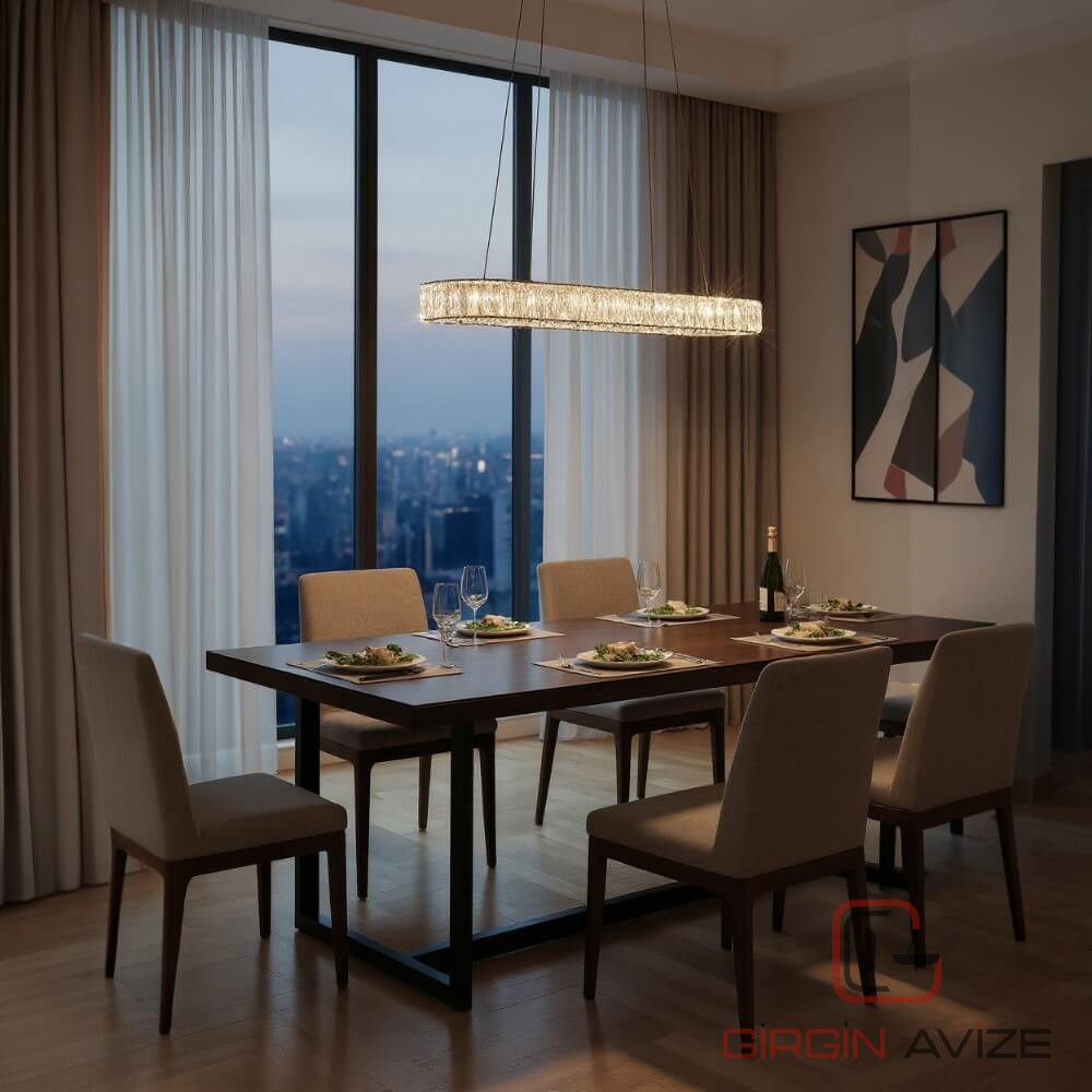 Horizon Oval Sarkıt Kristal Taşlı Led Avize